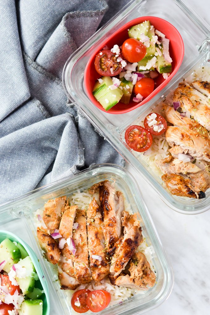 These meals have everything you need for a perfect meal prep: an easy marinade made with ingredients you might already have on hand, flavorful baked chicken served over rice, all your veggies in a delicious side salad, and four servings of lunch to get you through the week! – Baked Chicken Shawarma Meal Prep from Meal Plan Addict