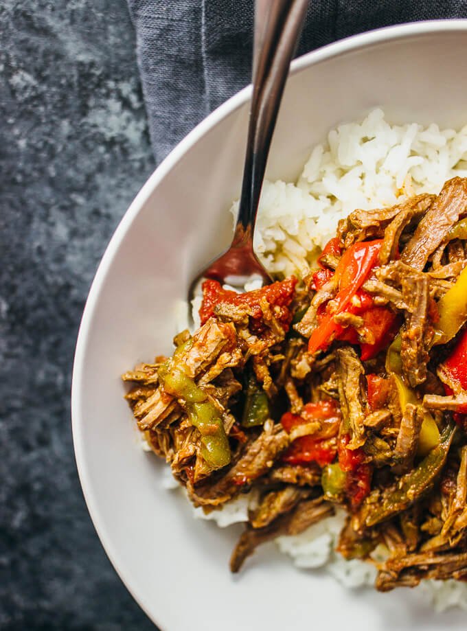 This is a delicious slow cooked Cuban beef stew with mild flavors that anyone in your house will love. It’s usually served over rice (sometimes with plantains and black beans too) and would make the perfect meal prep recipe to add to your rotation.
