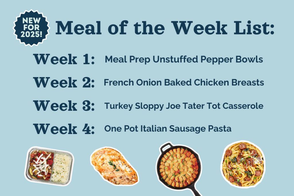 - Include the Meal of the Week in your weekly meal plan (check the list below!).