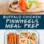These Buffalo Chicken Pinwheels are a hot twist on classic deli pinwheel sandwiches! Packed with carrots, celery, provolone cheese, and buffalo flavored cream cheese, these pinwheels are a wonderful cold lunch meal prep idea!