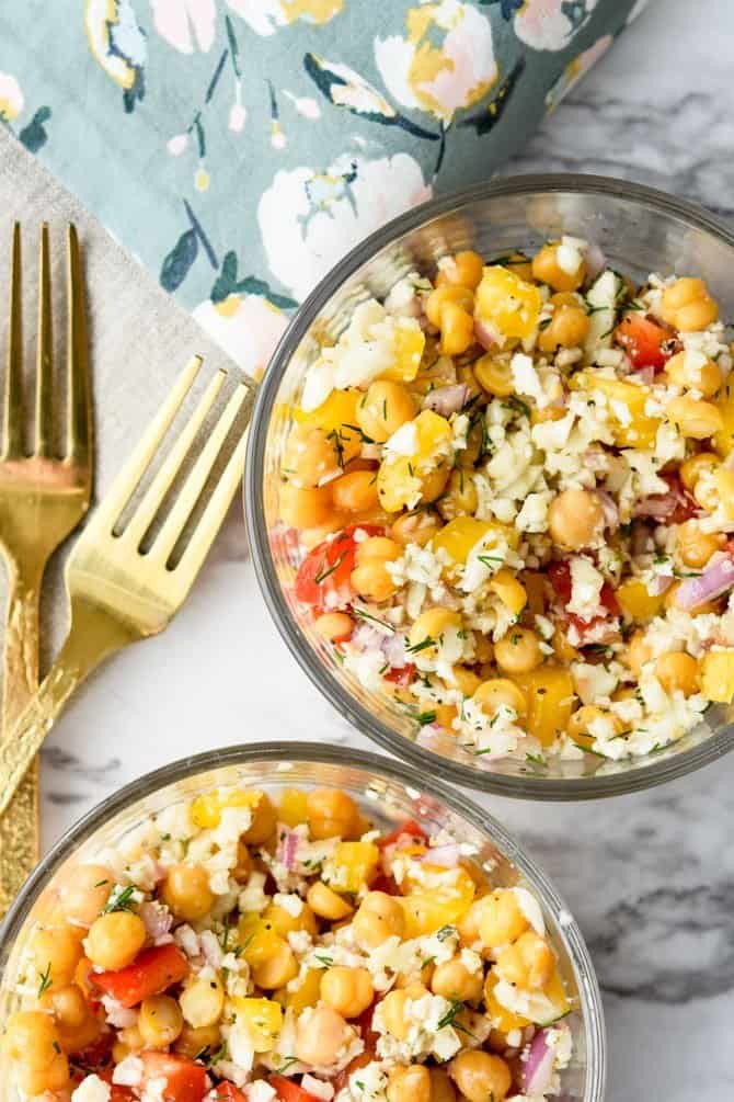 This is one of those recipes that gets better the next day, after the ingredients have had time to marinate with the dressing! It’s great for warm weather, full of clean ingredients, and takes just a couple minutes to throw together!