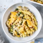 This is a great recipe if you’ve got leftover chicken that needs a good use. The recipe calls for 12 ounces – you can either find two small chicken breasts and cook them up for this recipe, or use your leftover chicken.