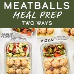 Tasty little bites of chicken meatball goodness over your favorite pasta with roasted veggies on the side… four portions, TWO WAYS (pizza & garlic veggie!). Add variety to your meal prep with Chicken Meatballs Two Ways Meal Prep Lunches!