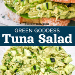My favorite way to eat this Green Goddess Tuna Salad is on a couple slices of bread with some romaine. It makes the best tuna salad sandwich, but a green version!!
