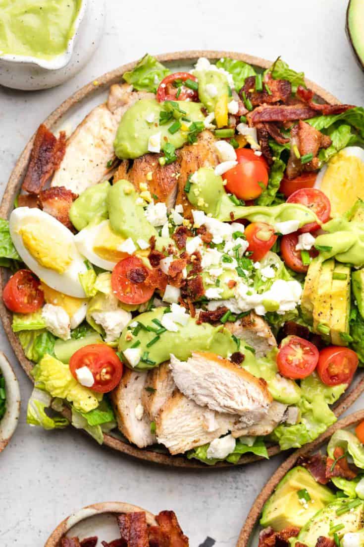 Another classic lunch salad that's only made better with the addition of HBEs. Chicken breast, bacon, tomatoes, all the components of a classic Cobb. I've had a cobb salad, but I've never tried this gorgeous green avocado dressing before! This one's on my list for summer!!