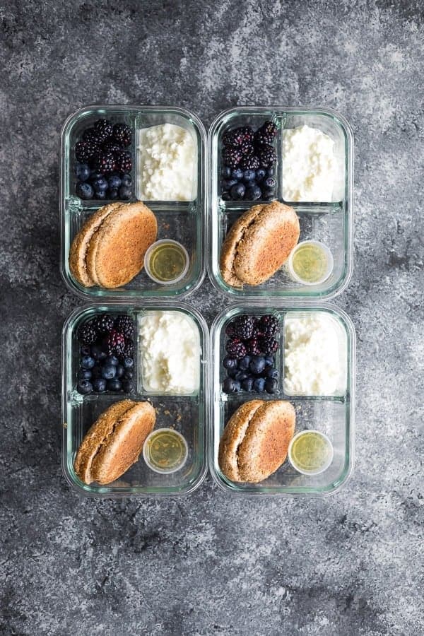 I had never thought of using an English Muffin as a vessel for cottage cheese, but I think it’s worth a try! Honey and berries are a match made in heaven. I love how simple and easy this breakfast box is, and it’s a great use of these 3 Compartment Glass Meal Prep Containers.