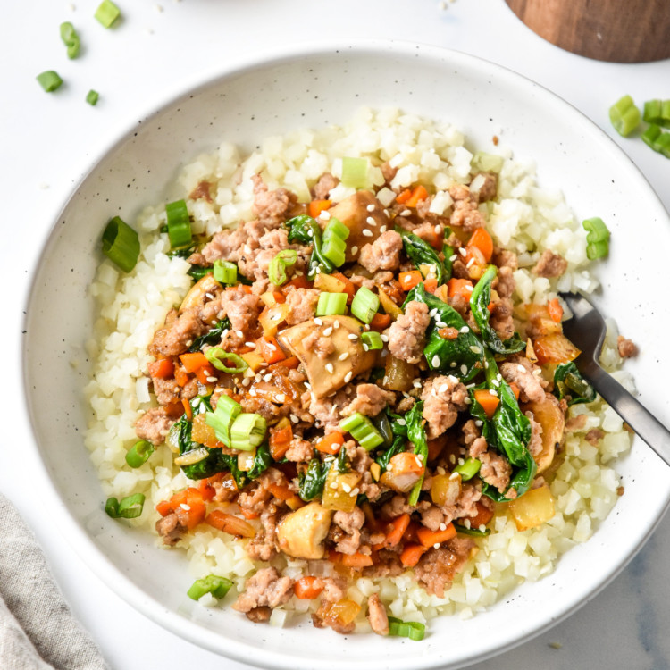 This One Serving Vegetable Pork Bowl is a simple stir fry recipe that is packed with flavor and perfect for one! Seasoned ground pork and vegetables in a delicious sauce come together in just 15 minutes. Serve with your favorite rice for a quick and easy weeknight dinner.