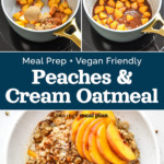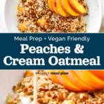 This classic Peaches and Cream Oatmeal is hearty and delicious, made with rolled oats, fresh peaches, and a brown sugar drizzle. Stovetop and Instant Pot directions are included for this meal prep and vegan friendly breakfast!