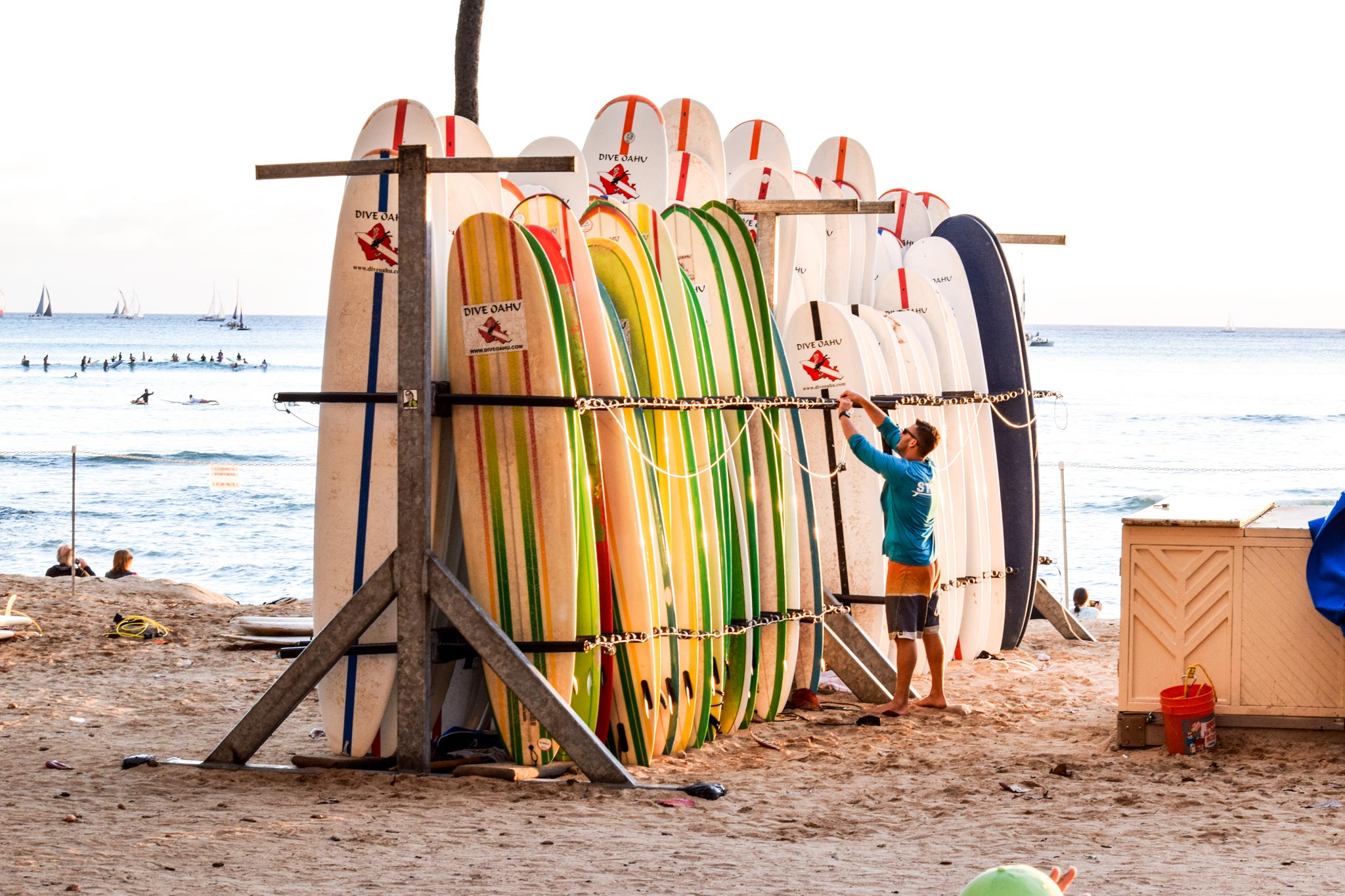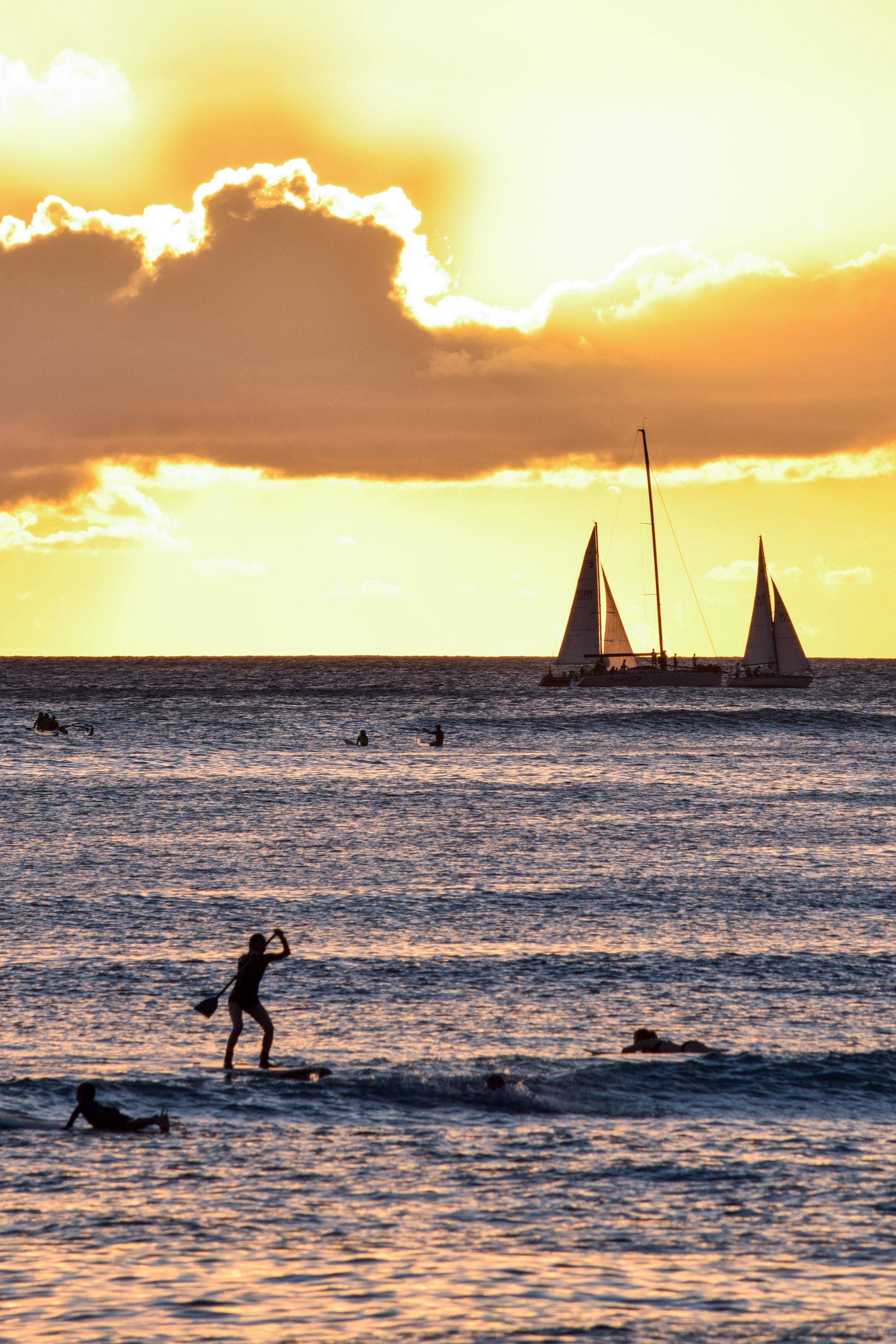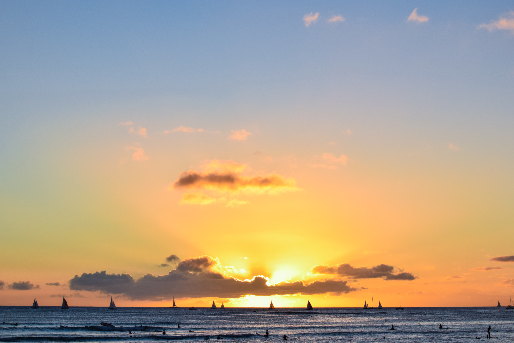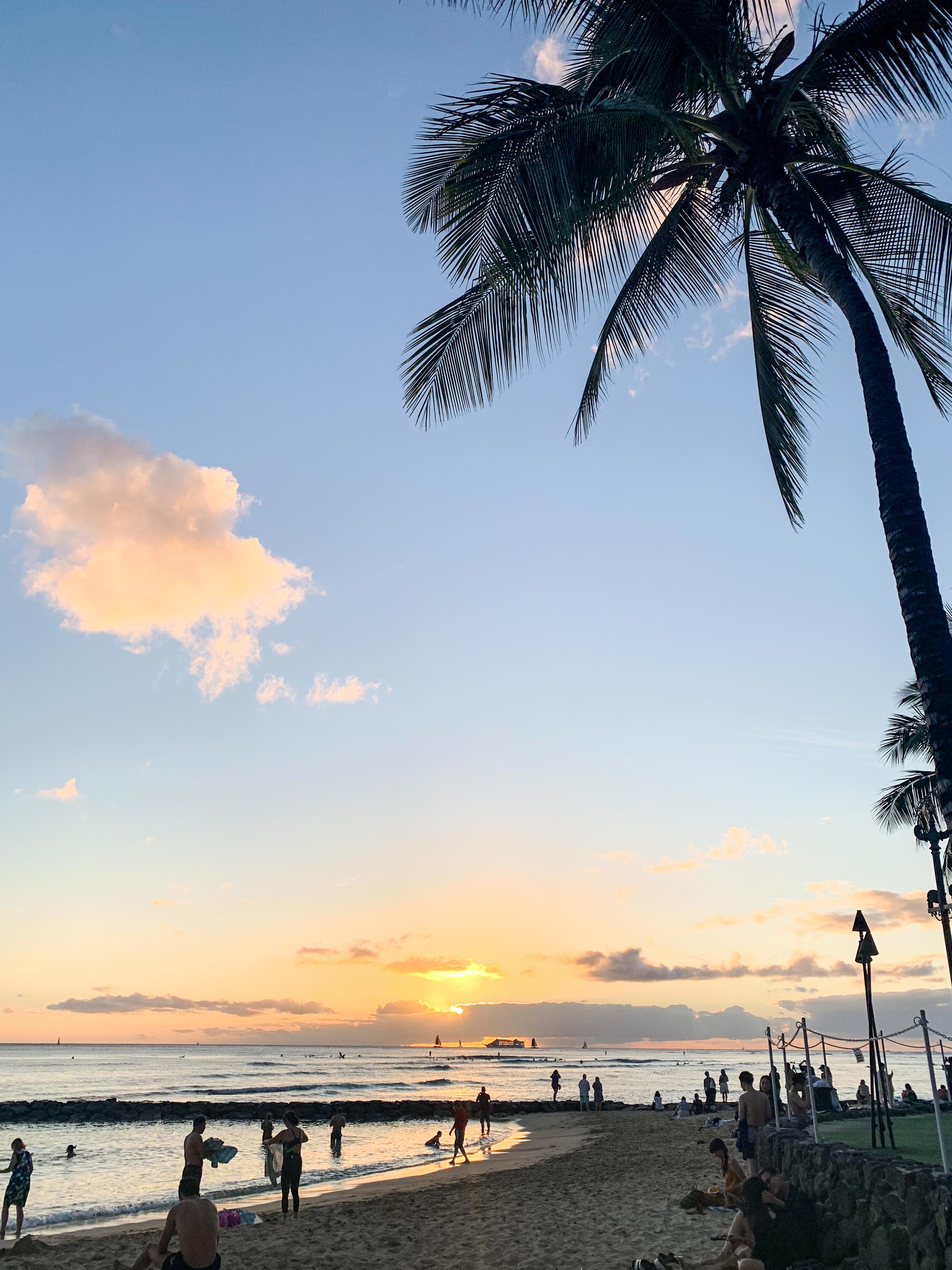 We flew into Honolulu on Friday morning and then spent the afternoon exploring Waikiki Beach. I keep telling everyone it reminded me of the Vegas Strip (minus gambling plus the beach), because of how there were people and ABC Stores everywhere. Like, on every corner. And tons, tons, tons of shopping. The sunsets were unreal. Sail boats, paddleboarders, surfers, people, everywhere.
