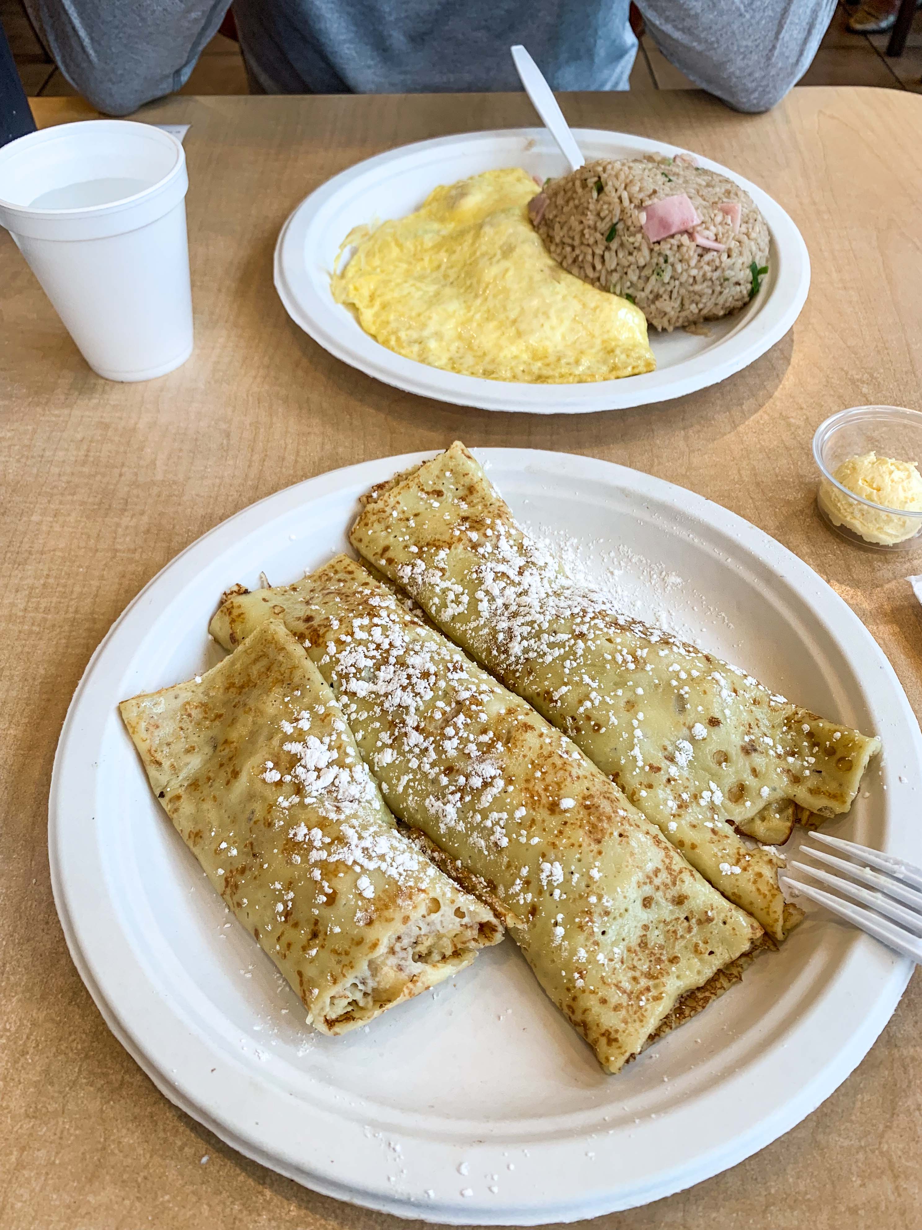 We picked something on a map after leaving Pearl Harbor. It was a gamble. And it was SO YUMMY. Can you say best crepes of your life?? How about fried rice for breakfast?