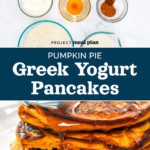 Spruce up your basic pancake mix with these Pumpkin Pie Greek Yogurt Pancakes! These pancakes use pumpkin puree and pie spice for flavor, with the Greek yogurt adding protein and thickness. Delicious and make-ahead friendly!