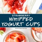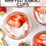 Creamy whipped Greek yogurt plus homemade strawberry sauce equals these Strawberry Whipped Yogurt Cups – delicious, easy to make, and perfectly portioned for dessert or breakfast meal prep!
