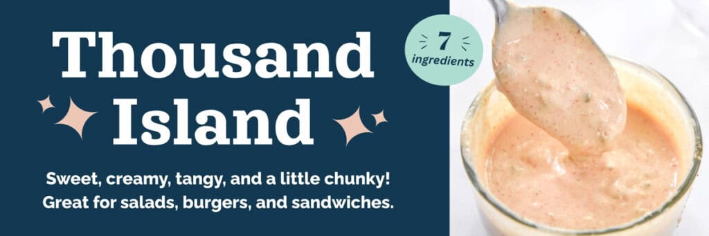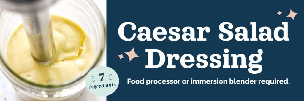 - mason jars – For most dressings and sauces, I put the ingredients in a pint sized wide mouth mason jars (affiliate link!) and then shake with the lid on, or use the immersion blender. I especially love this because you can store in the same container. Just put the lid on and stick it in the fridge.