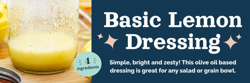 There are several dressings and sauce recipes spread throughout the meals on Project Meal Plan, so I’ve put them together into The Dressing Directory! Find all our dressing, sauces and dips with recipe pairings on this delicious list!