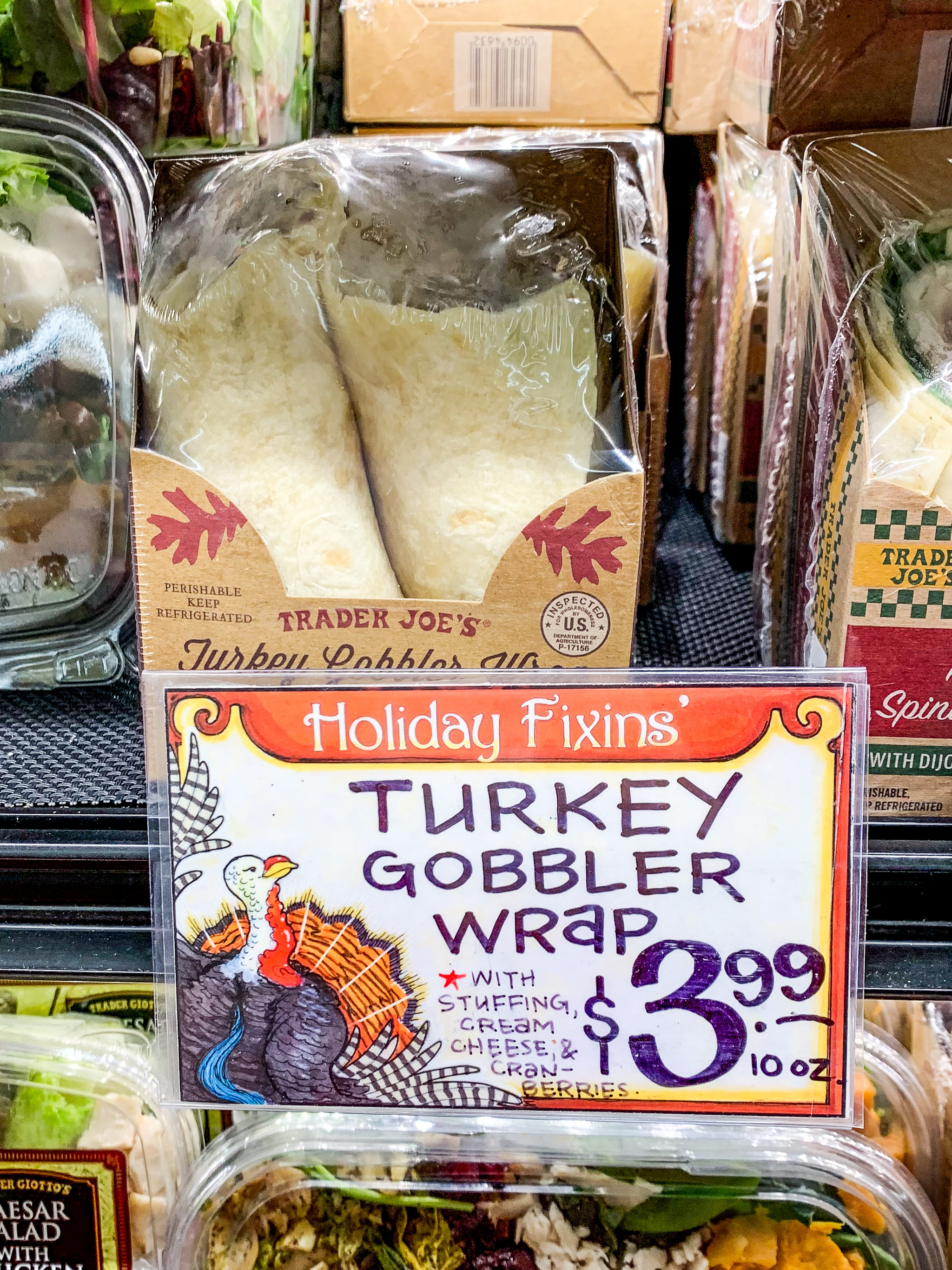 The turkey gobbler wrap is a delicious ready-to-eat lunch option available at Trader Joe’s during the holiday season. It’s been on the shelves every year for as long as I can remember, and it’s probably my favorite wrap they sell.